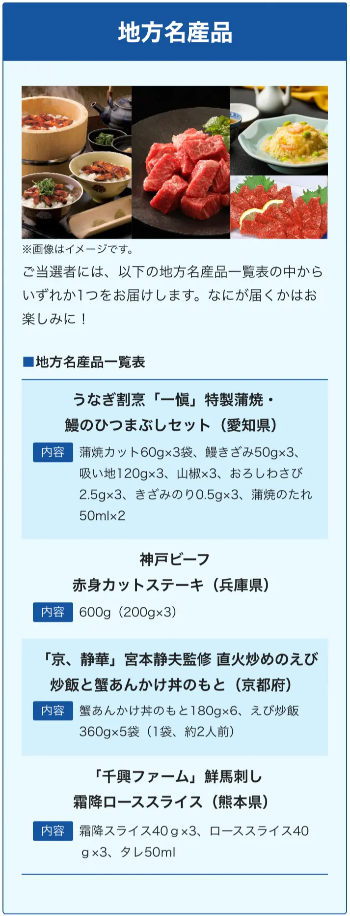 当選した方にはお好きな賞品を1つ進呈します。- ※1 プレゼントの内容等は変更となる場合があります。詳細はそれぞれのプレゼント受け取り時に、各サイトでご確認ください。